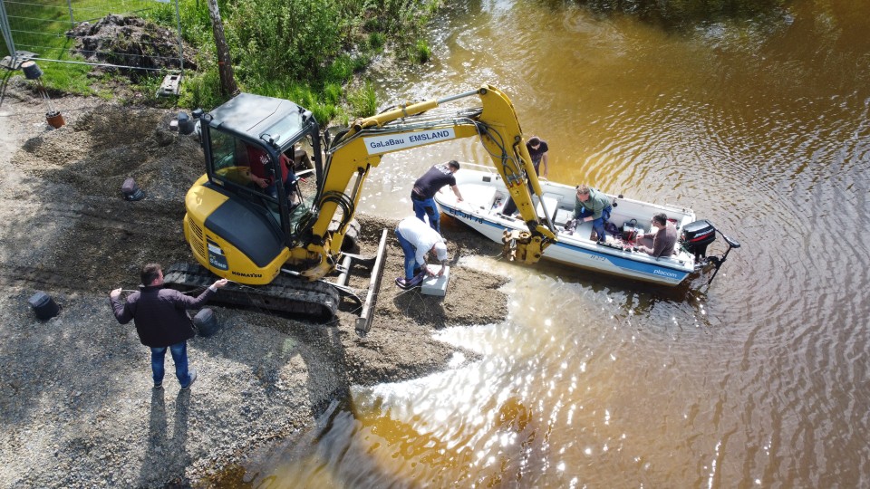 Auf unserer Baustelle "Rathaus- und Seeumfeld Twist" geht es in großen Schritten vorwärts. Mit Unterstützung konnten wir endlich die Fontäne auf dem See vor dem Rathaus in Twist installieren.