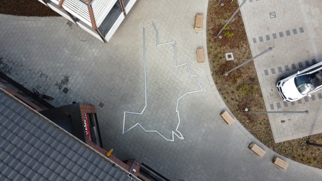 Auch die Gemeindekonturen aus Edelstahl glänzen im Boden vor dem Rathaus.